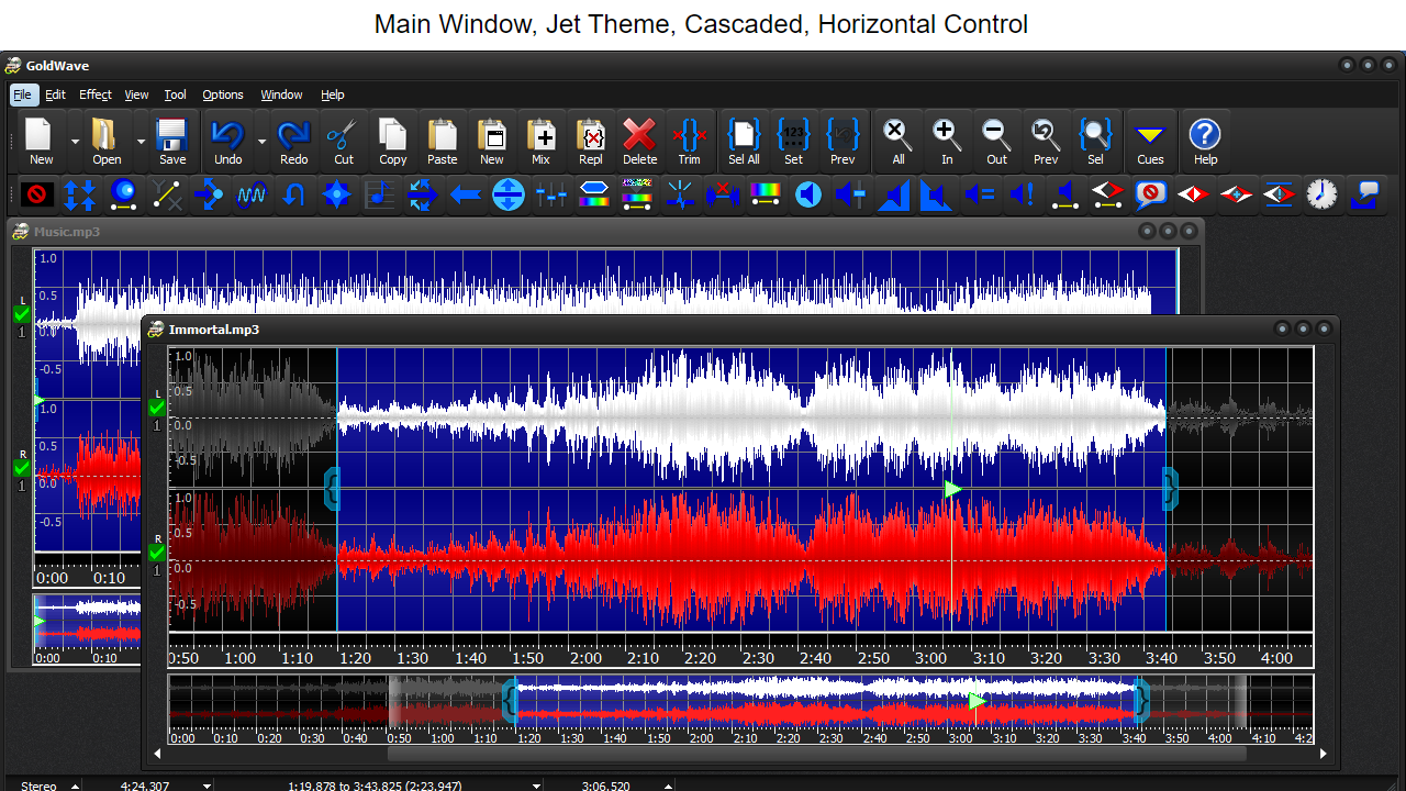 GoldWave是一款专业用于音乐剪辑和音乐制作的音频软件,GoldWave最新版之中可以进行音乐播放、录制、剪辑、后期等一系列操作,基本可以满足音乐工作者的工作需要,并且可以打开WAV、OGG、VOC、IFF、AIF、MP3APE等众多格式的音乐,非常全面。