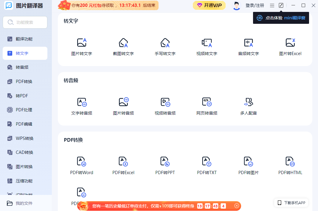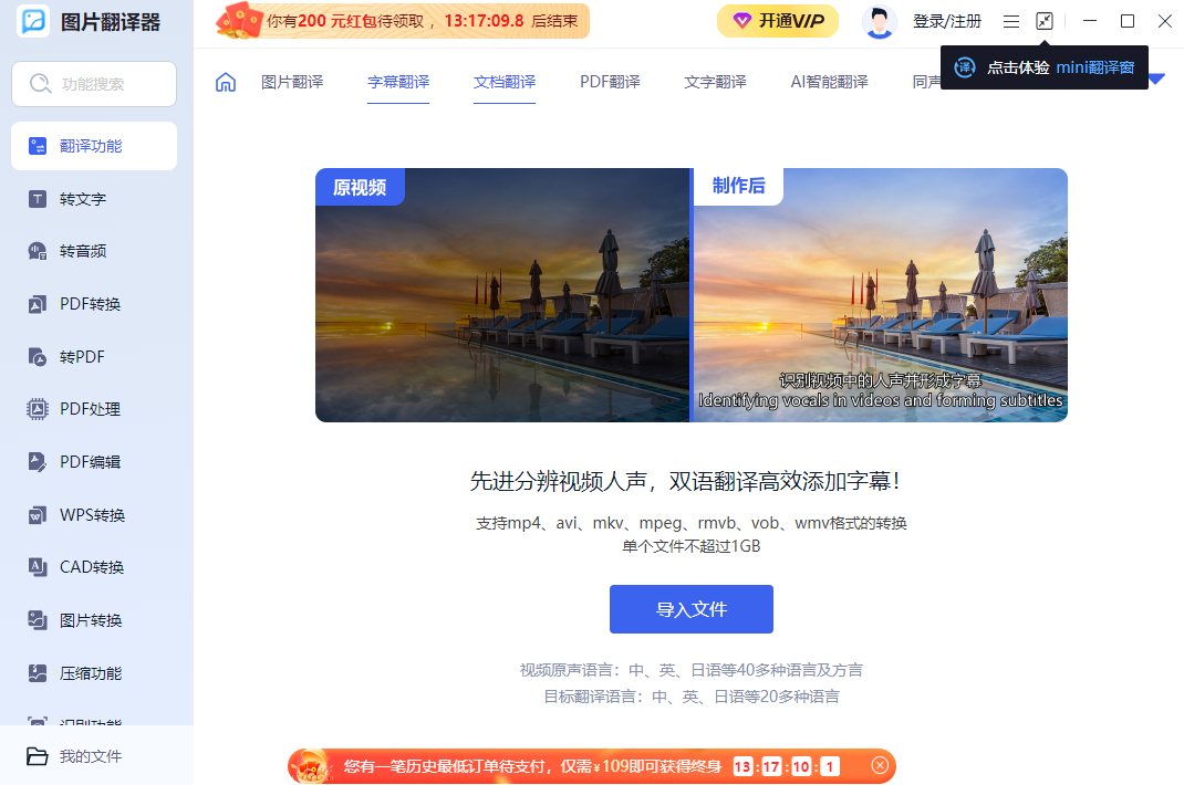 提供图片、文档、截图、PDF等十多种常见格式的翻译功能,覆盖广泛的日常翻译需求。