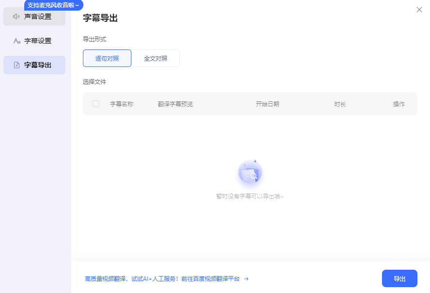 字幕内容导出,支持SRT、TXT等格式,方便后续整理与复盘。