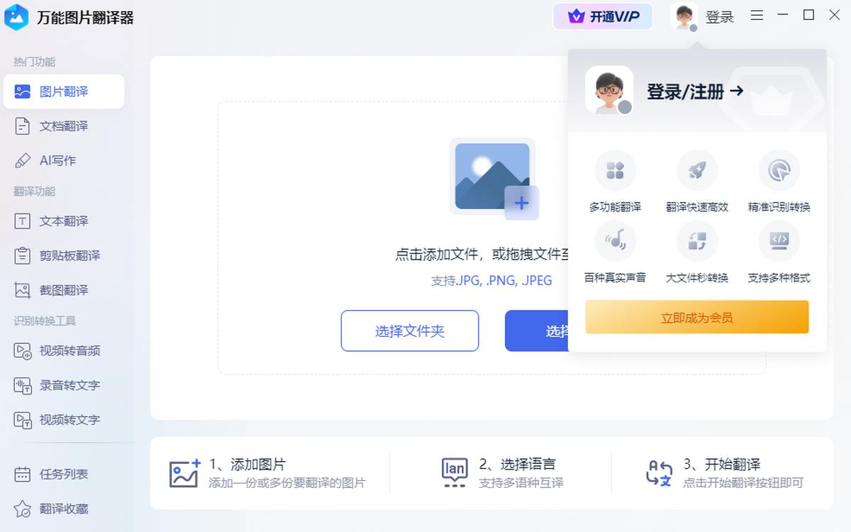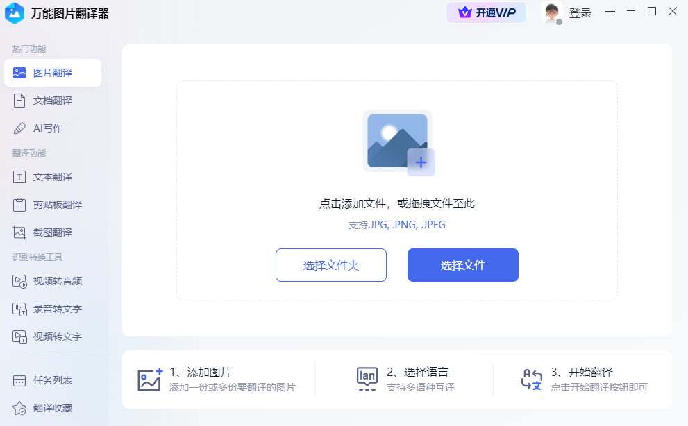 万能图片翻译器是一款专注于内容翻译的工具,万能图片翻译器电脑版对于用户来说可以进行图片翻译,软件支持多种语言内容翻译,并且软件的过程非常快速,无需用户过多等待,支持批量文档和图片内容翻译,帮助用户快速做好工作。