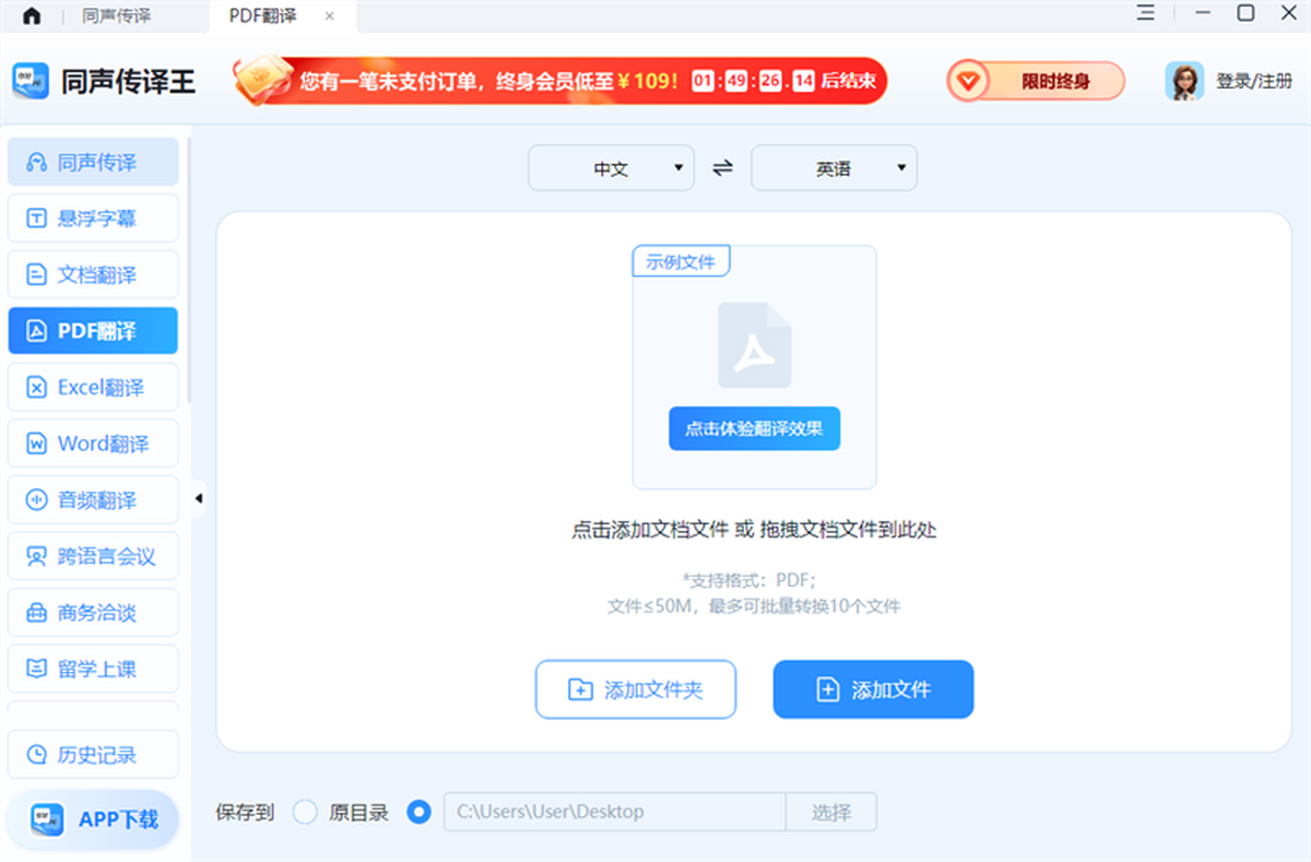 提供专业同声传译功能,支持50+种语言互译,具备智能降噪和术语优化,确保沟通准确流畅。
