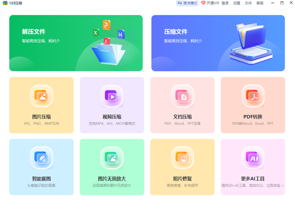 123压缩软件是一款国产高效、易用的文件压缩与解压工具123压缩2026电脑版支持 ZIP、RAR、7Z 等常用压缩格式,可将单个文件或整个文件夹快速压缩,减少存储空间占用,支持分卷压缩,大文件可拆分成多个压缩包,便于存储与传输。