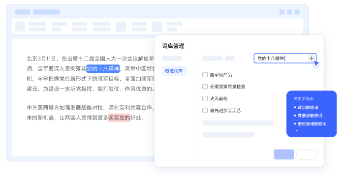系统支持用户灵活自定义新词、错词及敏感词,能够很好地适应不同行业与机构的个性化校对需求。