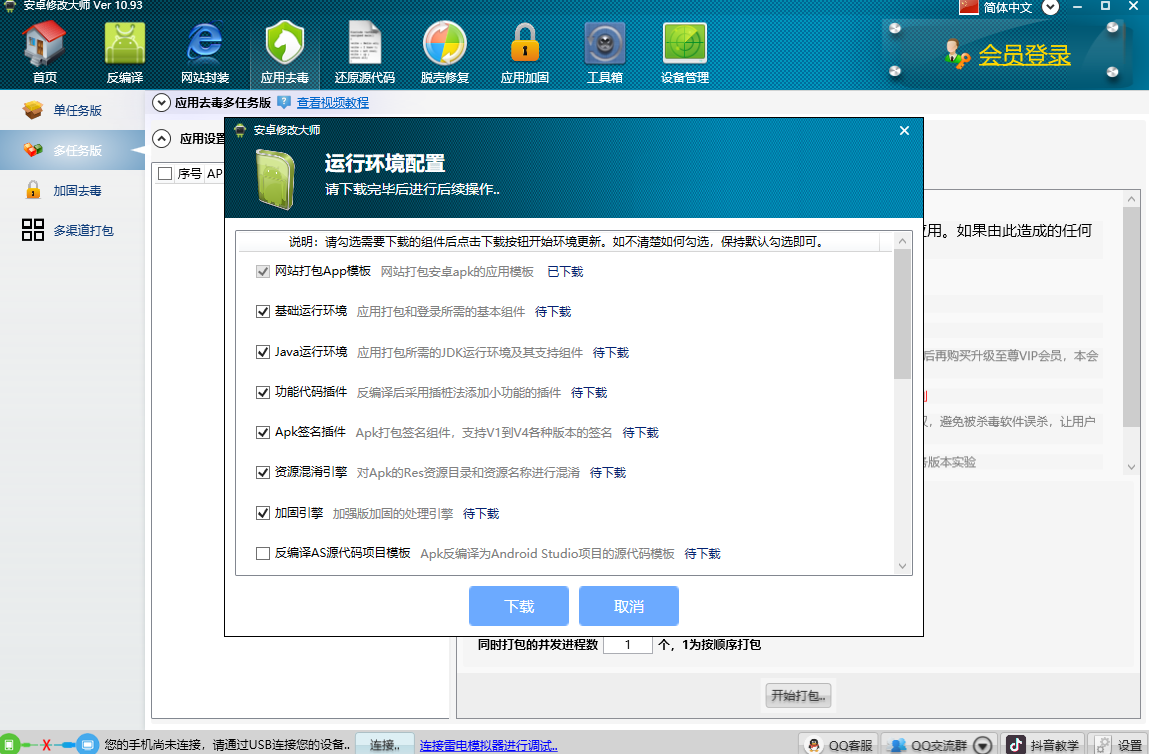 支持对未加固APK进行反编译修改,可定制图标、文字及多语言版本。
