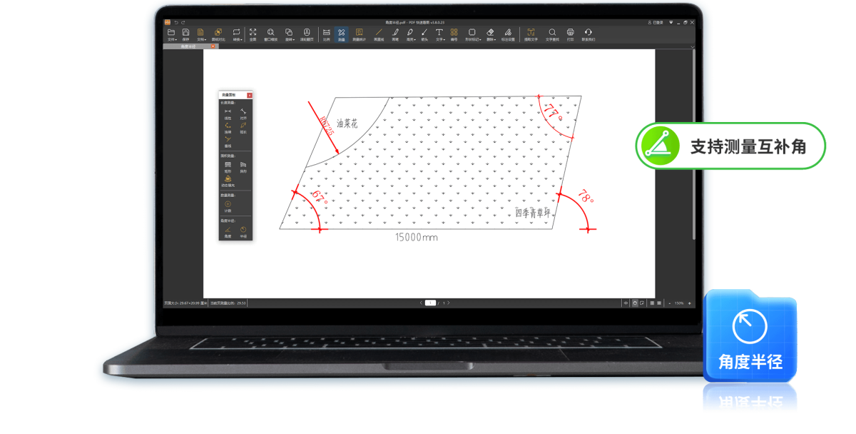 集成实用测量工具,设置比例后可进行距离、面积等数据精确测算。