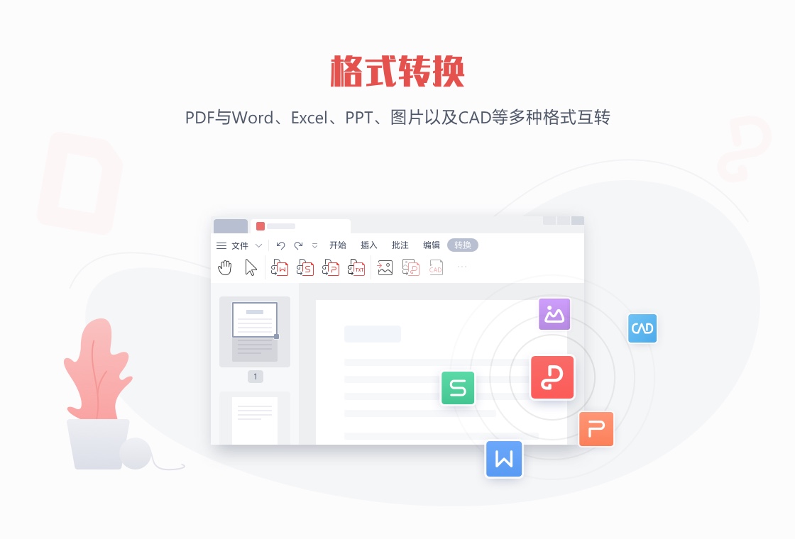 1、 支持 PDF 文件与 Word、Excel、PPT、TXT、图片等多种常见格式的相互转换。