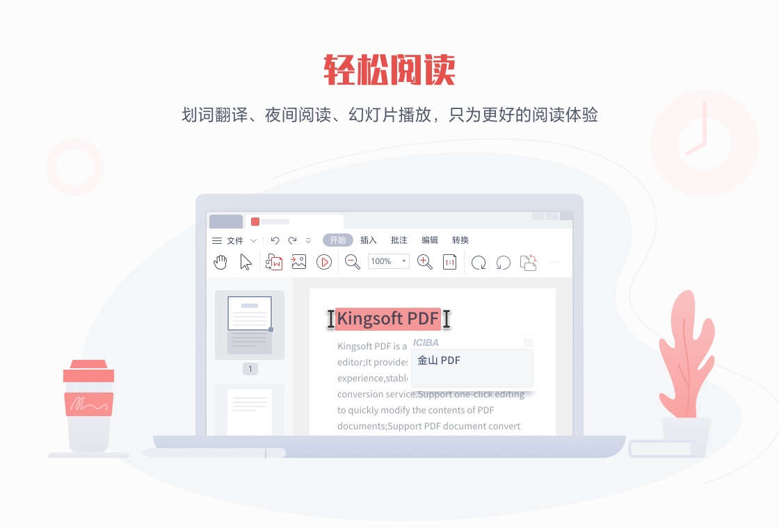 金山PDF是由金山办公公司出品的一款专业文件阅读软件,金山PDF电脑版之中用户可以直接使用该软件打开阅读PDF,并且可以帮助用户修改PDF文件,直接编辑该内容,并且支持一键与其他文件格式相互转换,非常强大。