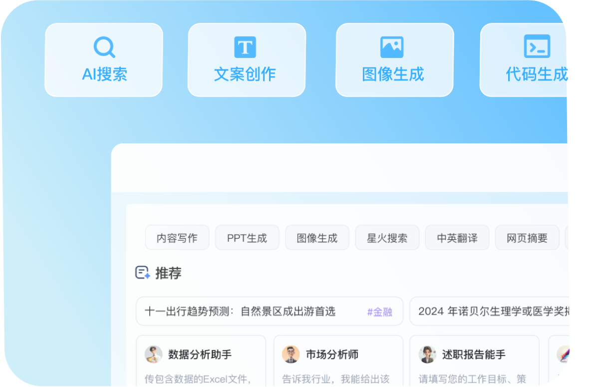 多场景智能服务,包括文案创作、编程辅助、图片生成等,支持快速解答工作学习中的问题。