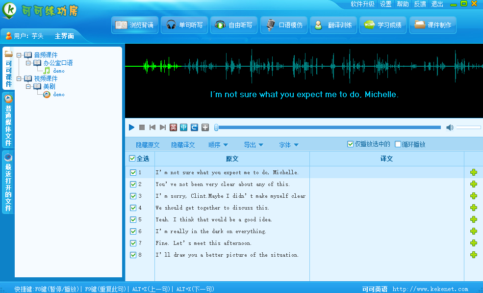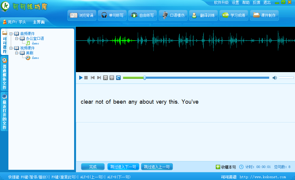 可可练功房是一款非常实用的学习软件,可可练功房电脑版之中用户可以在软件之中利用学习软件学习各种知识,软件从听、读、看、写四个方面来对英语学习进行阐述,一步一步教学用户语言学习的技巧,从而提高学习成绩。