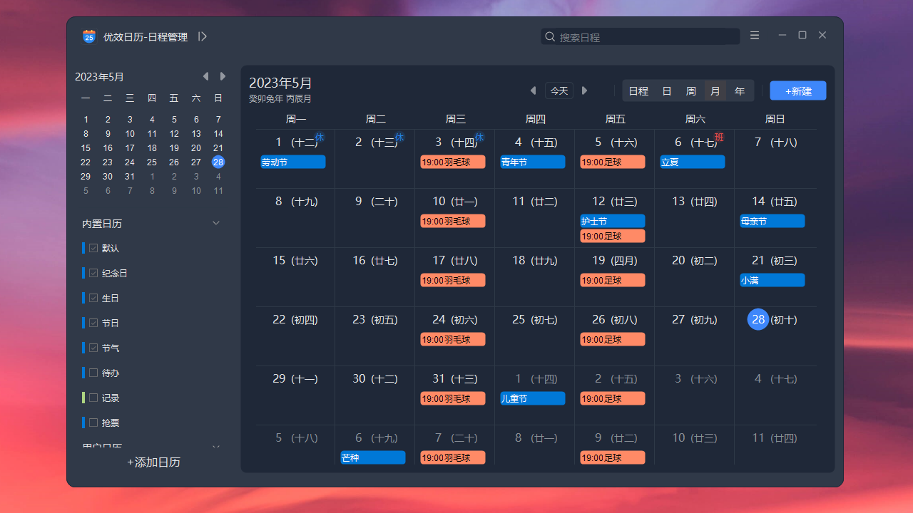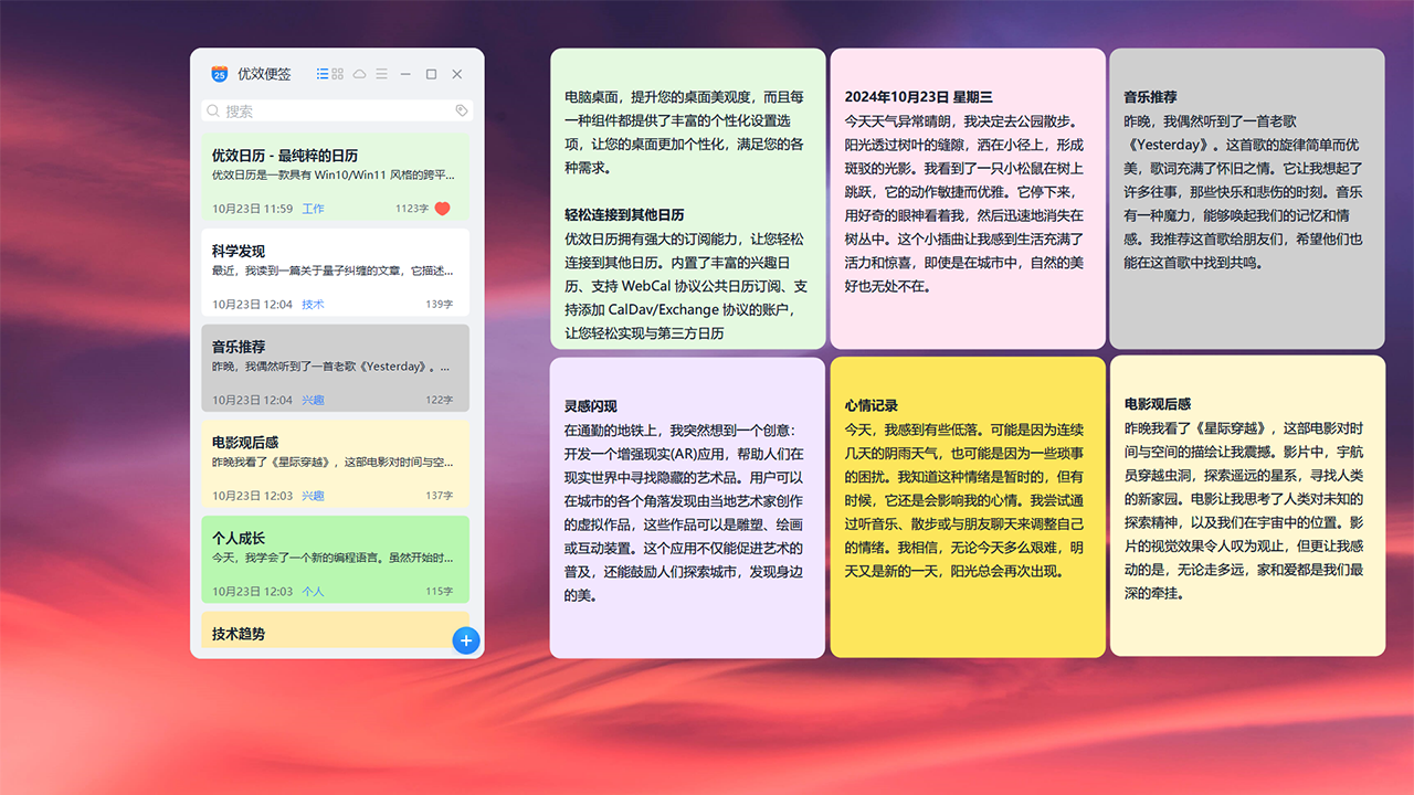 优效日历最新版是一款win10/win11风格的强大日历记录软件,优效日历正版之中用户可以体验到大屏幕的时间日历显示感受,将会直接显示在桌面,直观的体验时间的变化,ui显示可以完美融于桌面之中,还有自定义的时间闹钟提示,帮助用户记住重要事。