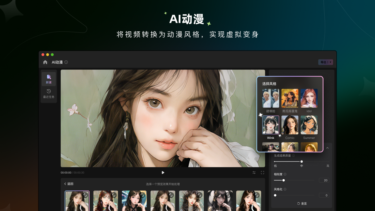 3、利用先进的 AI 技术,将视频一键转换为动漫风格。实现虚拟变身的奇妙效果,为视频带来全新的视觉体验,满足用户对于创意和个性化的追求。