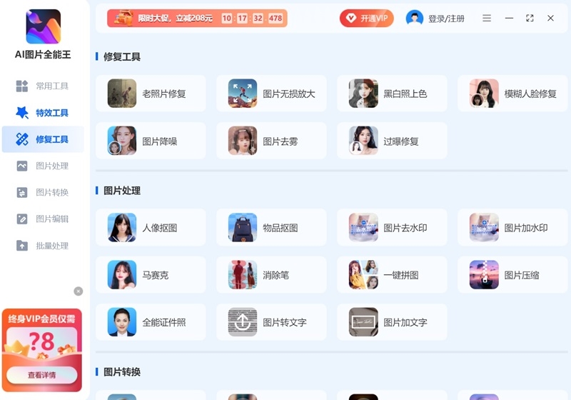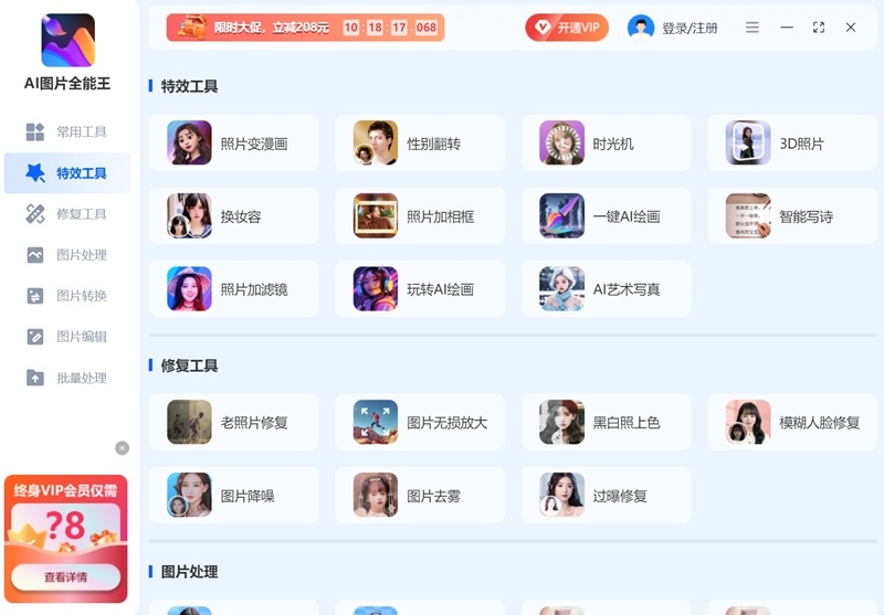 提供AI智能图像处理功能,支持高质量批量转换与增强,提升处理效率与画质。