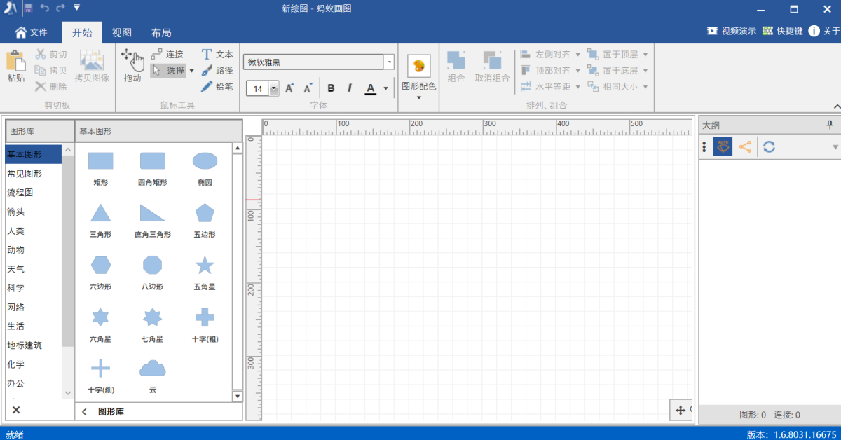蚂蚁画图是一款非常好用的矢量绘图工具,蚂蚁画图电脑版之中用户可以在软件之中做好各种矢量图像,软件有着各种简单的图形,用户只需要简单的组合就可以快速完成图形内容,并且用户可以直接使用图片格式来创作图形库,让绘图可以更加简单。