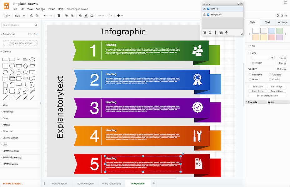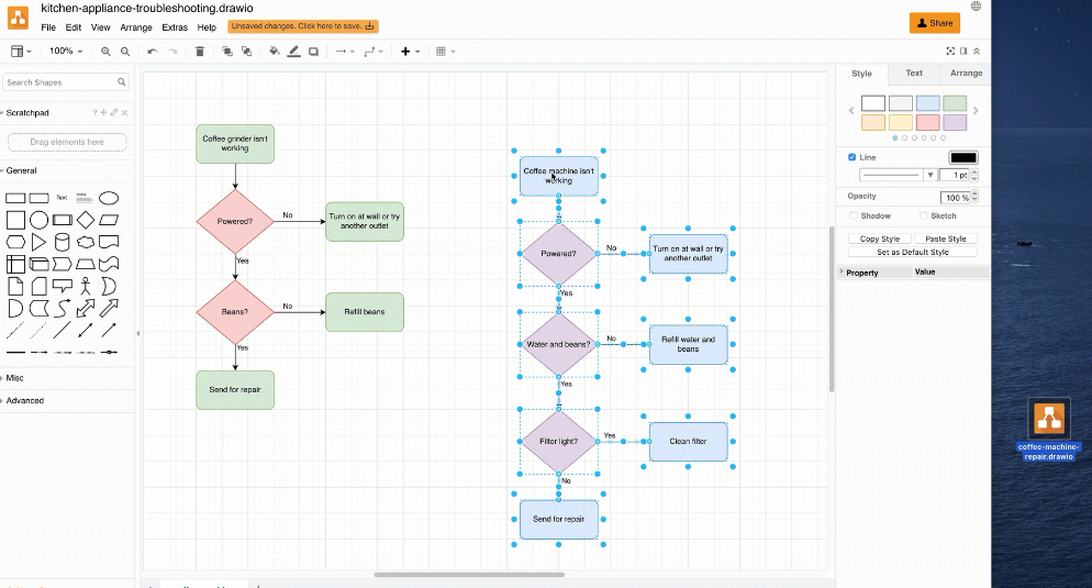 draw.io是一款好用的办公软件,draw.io软件之中用户可以在软件之中进行各种合适的导图绘制,在软件之中用户可以设置好流程图、结构图与电路图绘制图形,在软件之中可以自由绘制流程图内容,软件支持导入使用用户习惯的图标库、自动布局、数学符号、导出多种格式等内容。