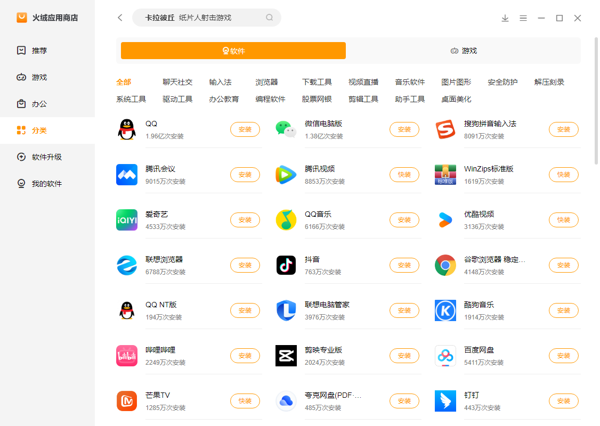 一站式应用管理,集软件下载、升级、卸载于一体,覆盖办公、娱乐、游戏等全品类资源,满足多元使用需求。