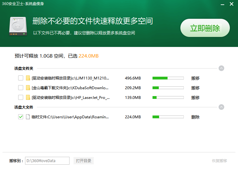 360系统盘瘦身在清理过程中会进行严格的筛查,确保不会误删用户的个人数据或重要文件。此外,它会生成清理记录,用户可以查看已清理的文件和数据,确保整个过程透明、安全。