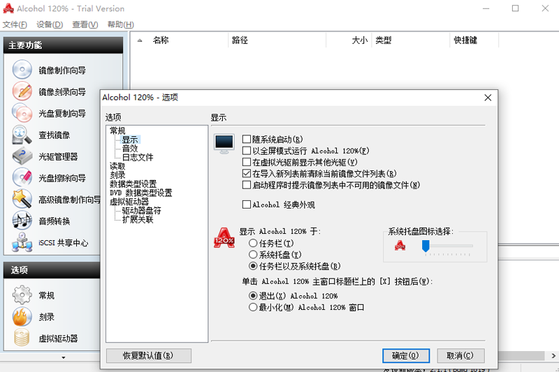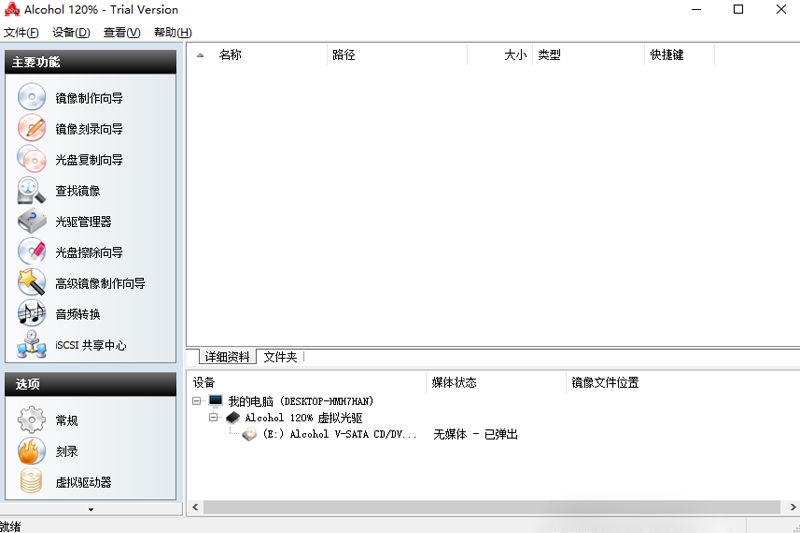 Alcohol 120%可以1:1完美复制CD、DVD、BD(蓝光)光盘,创建出与原盘完全一致的光盘映像文件,软件还可以同时创建和管理多达31个虚拟光驱,让用户无需物理光驱即可同时运行多个光盘软件或游戏。