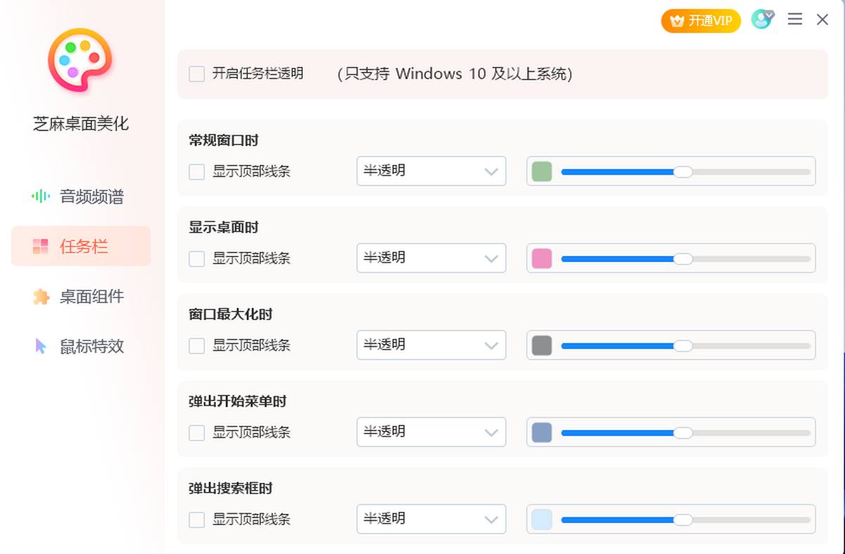 支持任务栏透明化与功能扩展,可自定义外观并添加实用工具组件。