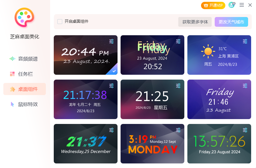 具备丰富的桌面小组件与光标主题库,实现信息展示与交互细节的个性化设置。