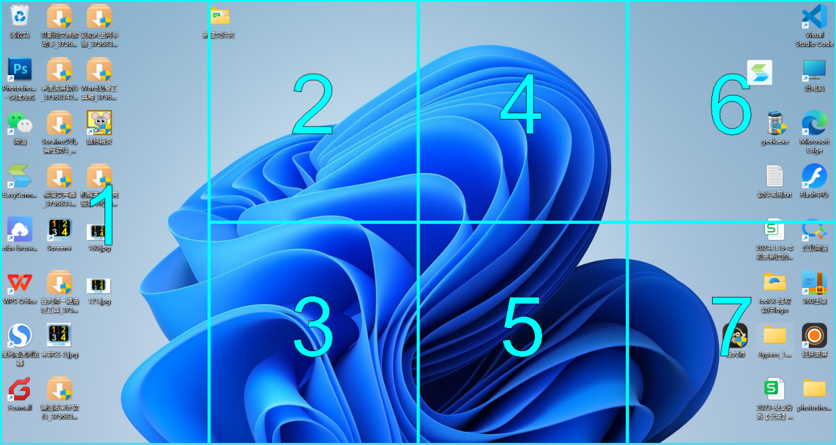 预设七种分屏方案支持自定义调整,用户可通过拖拽分割线灵活控制各区域大小,设置完成后自动保存。