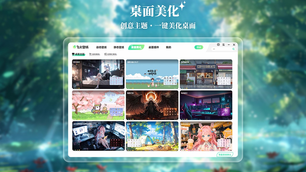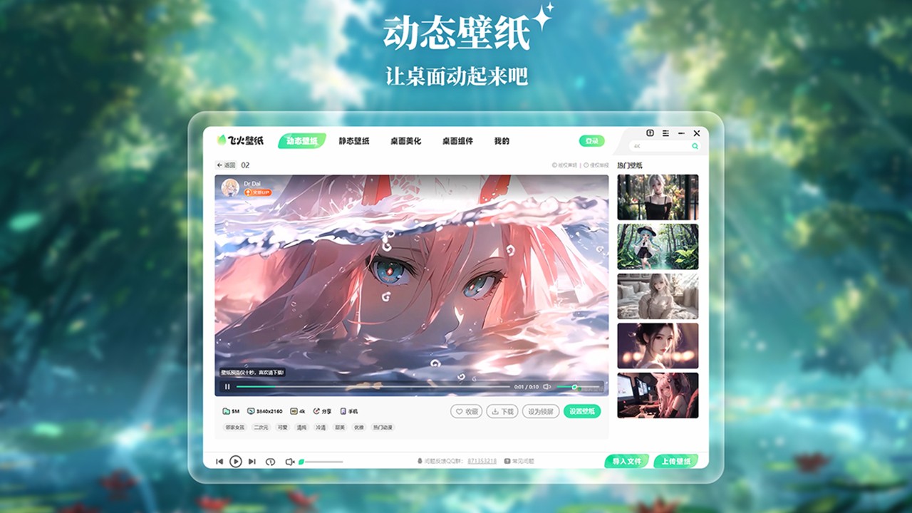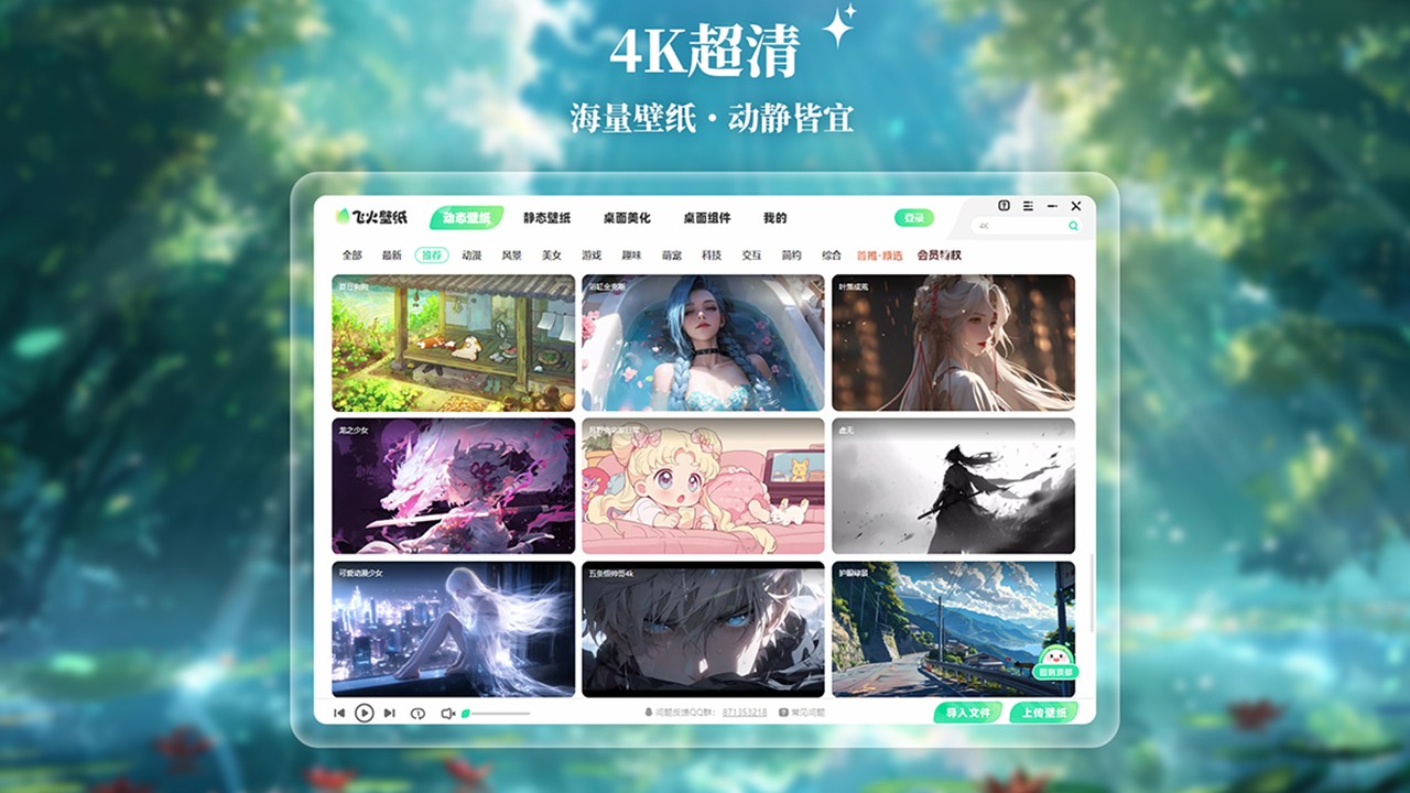 飞火动态壁纸电脑版有着千万高清壁纸的电脑壁纸软件,飞火动态壁纸最新版之中用户可以使用到全网最火的动态壁纸,并且还有精美静态壁纸可以直接使用,在软件之中搜索相关关键词即可一键进行安装喜欢壁纸,非常方便。