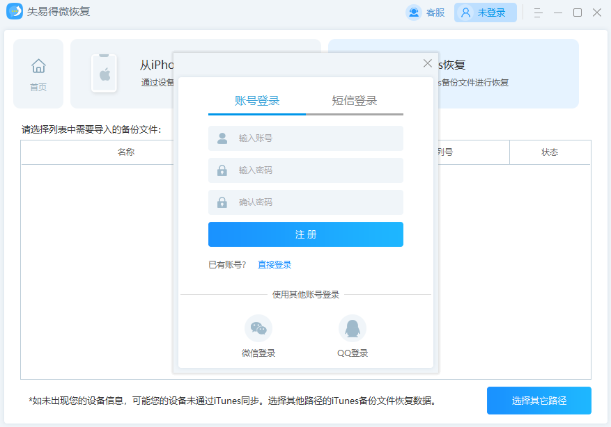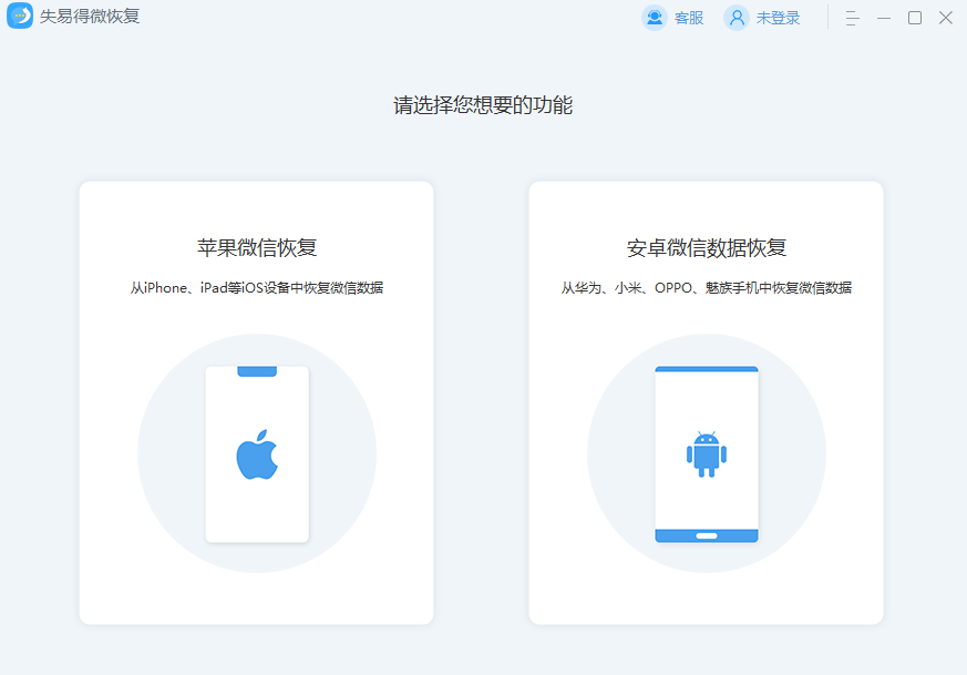 失易得微恢复是一款专注于手机数据恢复的软件,失易得微恢复电脑版可以直接恢复手机之中的数据内容,可以帮助用户完成微信的聊天记录恢复,让用户可以直接用上有着完全记录的微信,软件操作简单可以直接使用。