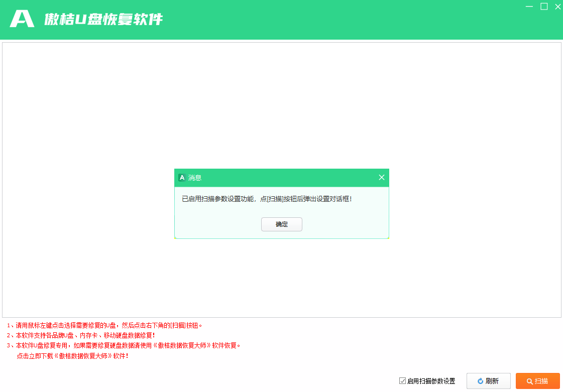 傲桔U盘恢复软件是一款好用的数据恢复工具,傲桔U盘恢复软件电脑版之中用户可以在软件之中查看因为病毒或者故障无法读取数据的u盘,软件可以帮助用户快速扫描储存硬盘,然后快速u盘数据,除此之外该u盘因为格式化、删除导致的文件丢失也可以一起恢复。