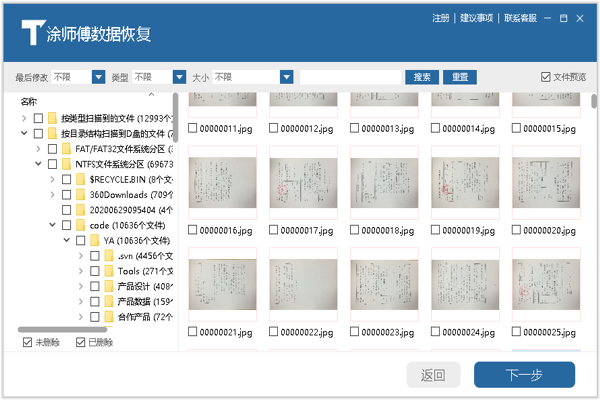 集成已删除文件深度恢复技术,支持多种存储设备和删除场景的数据找回。