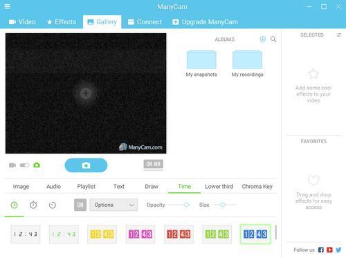 ManyCam之中用户可以通过该软件的插件,对电脑的摄像头添加很多额外的组件,让整体屏幕变得活泼开朗起来,让视频画面不会那么的无趣,这对于直播效果的提升非常重要。