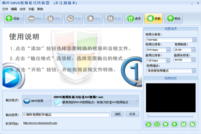 枫叶RMVB视频格式转换器支持RMVB与多种格式之间的互转、批量处理、可自定义输出参数、操作简单且速度快,适合需要将RMVB视频在不同设备或播放器上播放的用户使用。