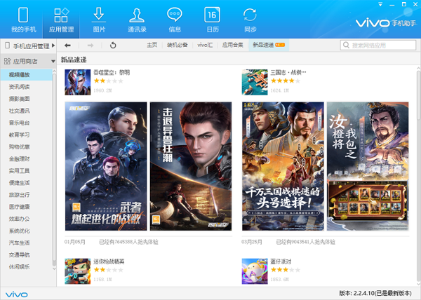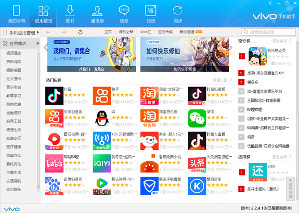 vivo手机助手软件提供了丰富多样的应用资源类型,用户可以通过vivo手机助手直接下载、安装或卸载手机应用程序,简化了应用管理的流程。