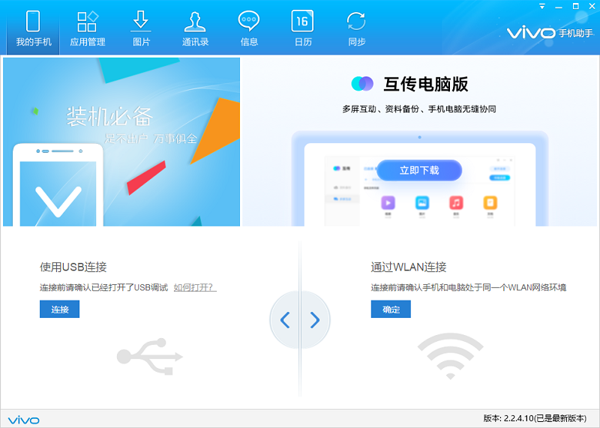 vivo手机助手电脑版是一款专为vivo智能手机用户设计的管理工具,vivo手机助手PC最新版支持用户轻松管理手机中的照片、视频、音乐和文件等资料,用户可以通过软件将文件从手机导入到电脑,或者从电脑传输到手机,方便快捷。