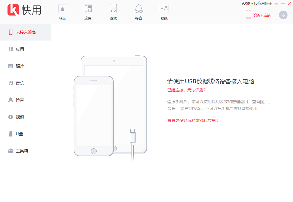 快用苹果助手是一款非常好用的pc端iOS辅助工具,快用苹果助手电脑版之中用户可以直接在软件之中下载各种软件,无需用户开启iTunes,就可以直接使用软件进行安装手机应用,该软件有着去全面的应用和游戏,用户安装即可使用。