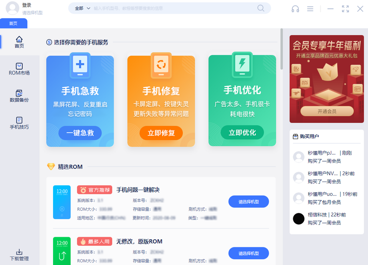 秒懂手机安全省时的一键刷机工具,无需专业知识即可轻松上手,即使手机没有 ROOT 也能刷机,且全智能进入刷机模式,系统可智能识别;软件提供的精品 ROM 包资源干净安全,无需用户费力寻找,确保用户刷机过程的安全性。