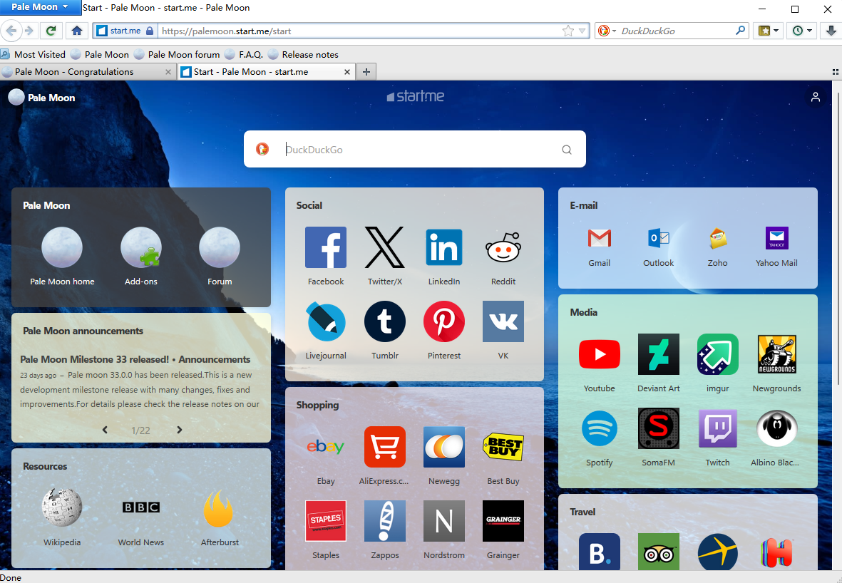 Pale Moon是一款由火狐浏览器修改而来,Pale Moon电脑版具备了Firefox的扩展功能,可以帮助用户做好浏览器之中的功能建设,让浏览器功能更加全面,并且软件有着更快的速度,帮助用户更好浏览网页。