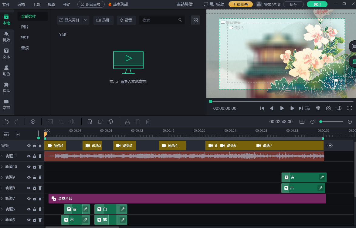 内置多种转场特效库,包含淡入淡出、滑动、缩放等过渡效果,可实现场景间的平滑切换。