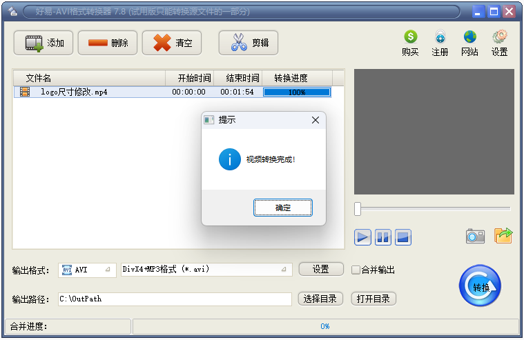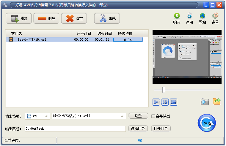 好易AVI格式转换器是一款专用于avi格式的视频文件转换的软件,好易AVI格式转换器可以将avi格式的文件转换成为其他格式的视频文件,并且可以在转换的过程之中进行视频大小改善,让视频可以在保持好分辨率的同时,变得更加小巧。