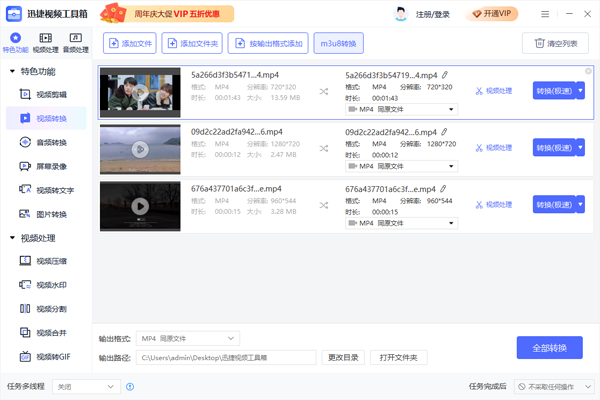 迅捷视频工具箱支持高清视频的播放,能够流畅播放各种格式的视频文件,兼容性强,支持批量视频处理,如批量格式转换、批量压缩,极大提高了工作效率,尤其适合需要处理大量视频文件的用户。