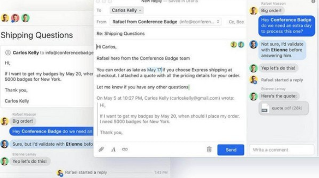 Missive是一款很好用的邮件处理工具,Missive电脑版之中用户可以在软件之中进行邮件的实时处理,软件支持快捷恢复,可以让用户一键回复相同和删除的文件,软件支持附件收取,让用户可以轻松处理邮件信息。