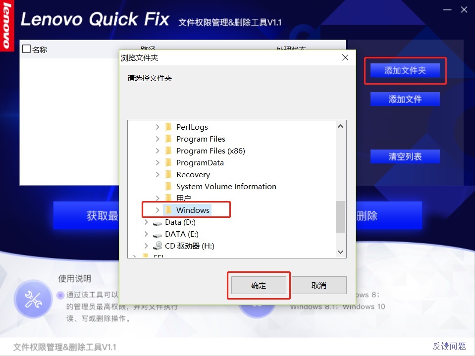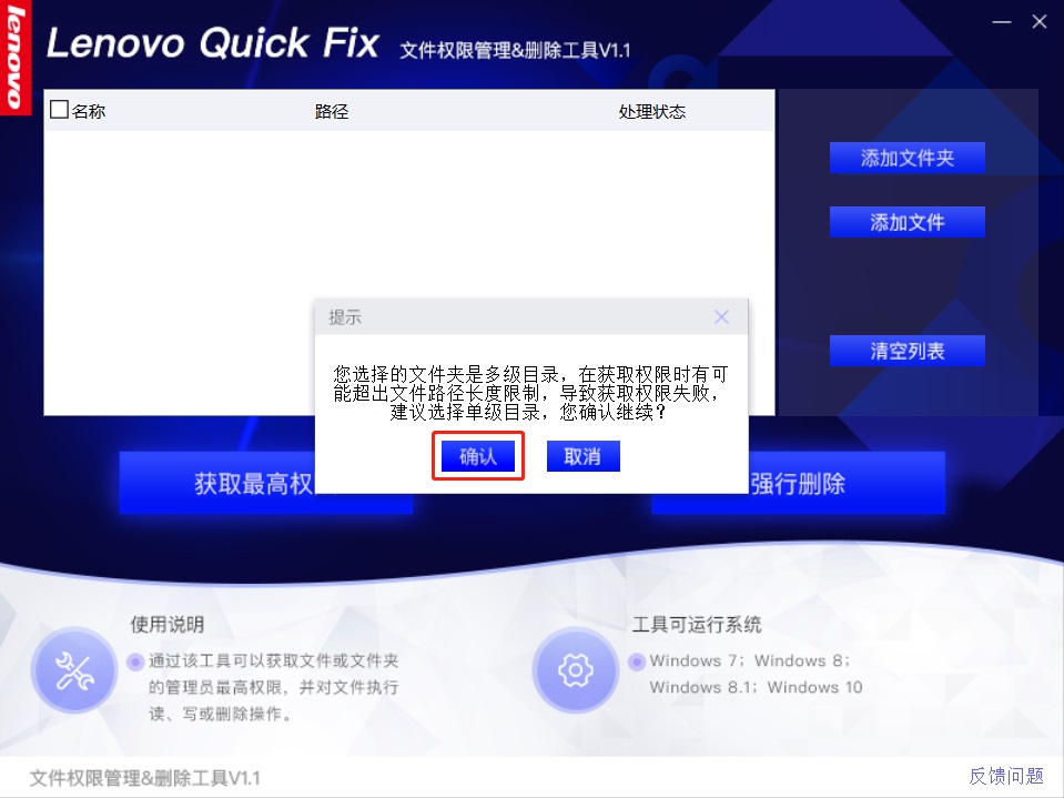 在执行获取权限或强制删除等操作后,工具会明确显示处理状态,例如“成功”或“失败”,方便用户确认操作结果。