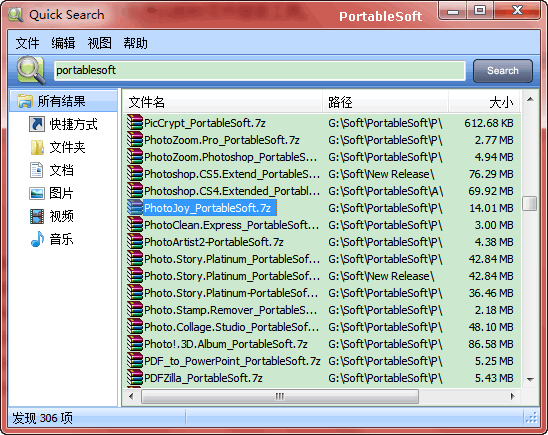 Quick Search是一款非常好用的本地搜索工具,Quick Search电脑版之中用户可以在软件之中搜索各种文件内容,并且软件可以根据文件的类型直接将文件进行分类,方便用户快速进行寻找,软件支持搜索文件内容、文件的型号等等内容,可以更精准的找到需要的文件。