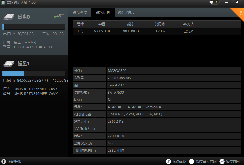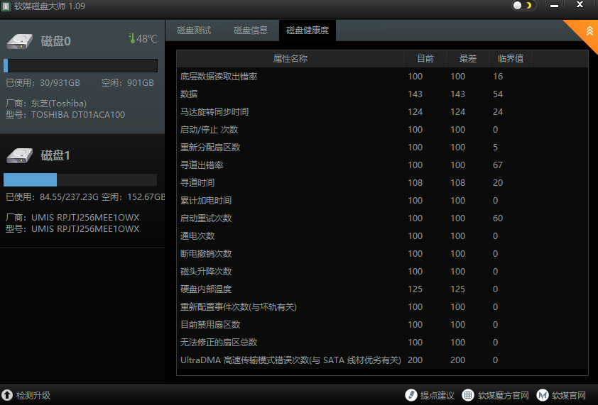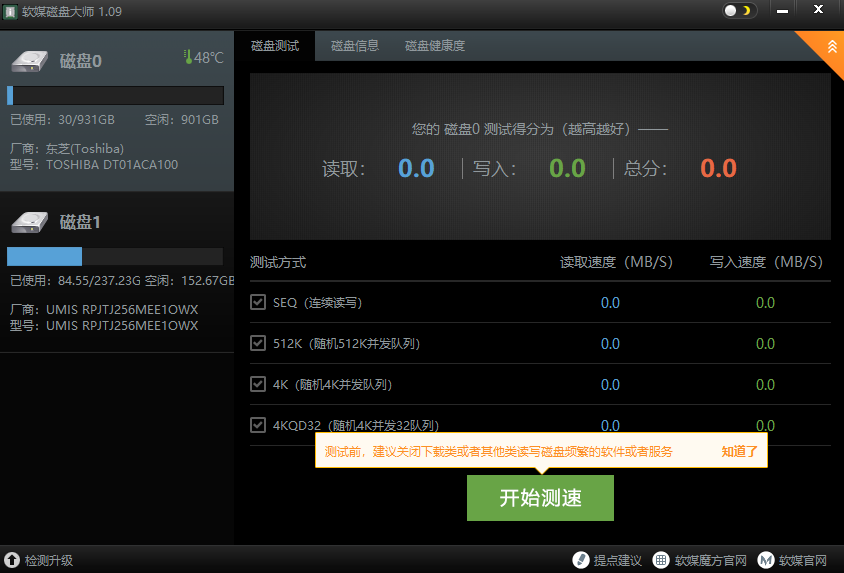 软媒磁盘大师是一款很好用的磁盘软件,软媒磁盘大师电脑版之中用户可以在软件之中检测出磁盘的温度、厂商以及整体健康情况,软件会显示磁盘工作的状态,让用户可以自行测试磁盘的正常工作速度,非常好用。