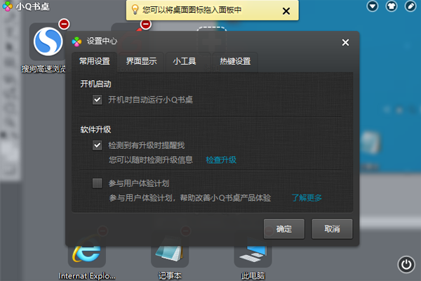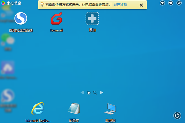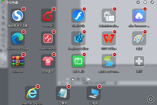 小Q书桌支持左右滑屏操作,用户只需按住鼠标,即可左右拖动操作面板,切换不同的页面。同时,在编辑状态下可通过拖入图标来添加应用或文件,操作简单方便。
