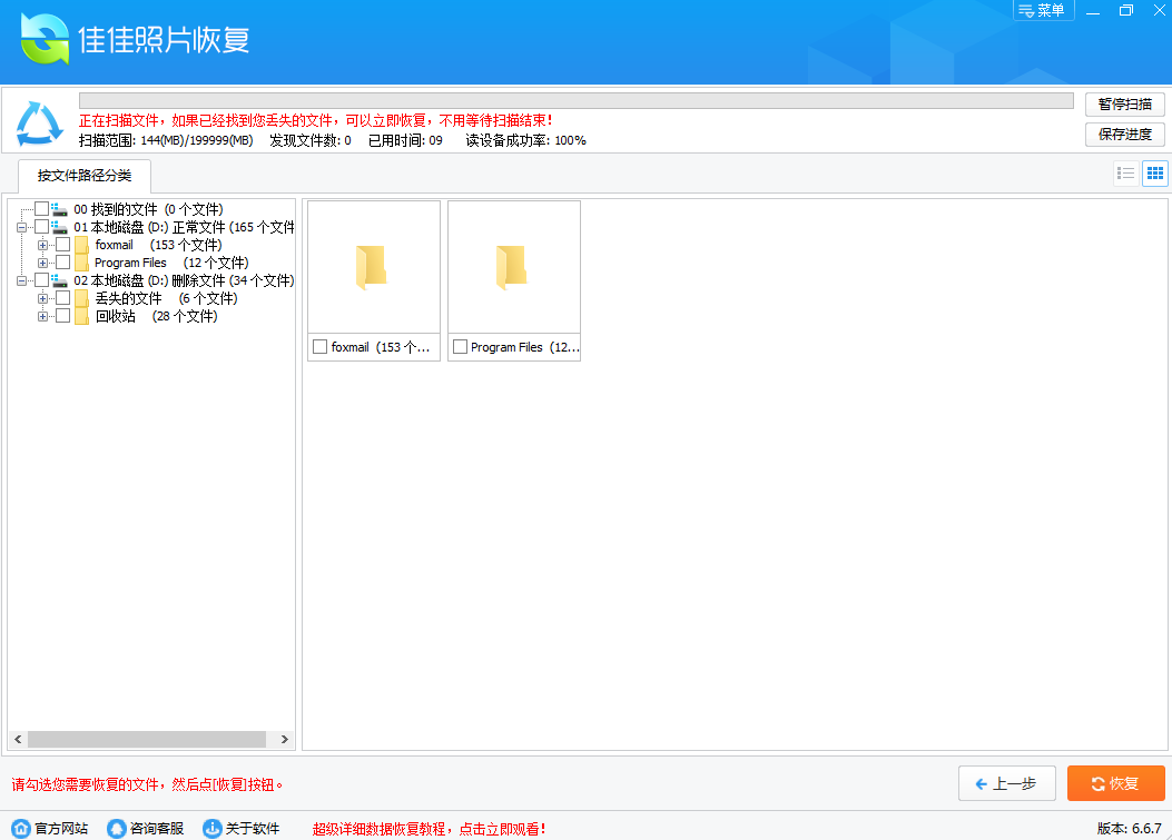 佳佳照片恢复软件是一款功能强大的数据恢复软件,佳佳照片恢复软件电脑版专用于各种照片文件的数据恢复,可以对于数码相机、常见照片格式等内容进行恢复,只需要进行简单扫描,就可以探查出照片是否可以恢复,非常强大。