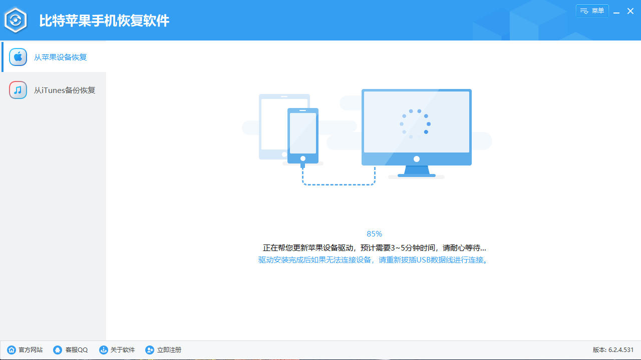 比特苹果恢复大师是一款非常强大的手机数据恢复工具,比特苹果恢复大师最新版之中用户可以使用该软件快速将连接的手机扫描,然后选择需要找到数据内容,在该设备数据没有完全清理之前,那么是可以找到需要的数据并且可以恢复的。
