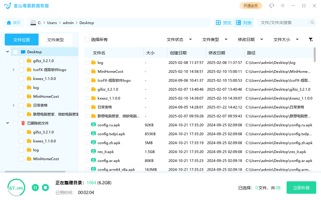 金山数据恢复之中用户可以使用该软件快速进行文件的找回,只要删除的数据所在磁盘没有完全清理,或者是不是太久,那么该软件就可以通过相关的技术来将数据一步一步进行恢复。