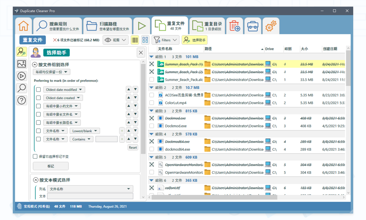 Duplicate Cleaner Pro是一款功能强大的文件查找工具,Duplicate Cleaner Pro电脑版对于那些有着重复名称以及内容的文件会自动进行筛选,软件支持文件清除能力,可以将筛选的文件一键全部清理,保留最新或者最佳的文件。
