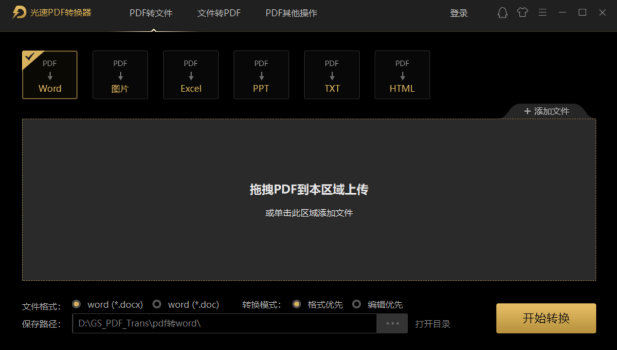 光速PDF转换器是一款非常好用的PDF工具,光速PDF转换器电脑版可以在软件之中进行各种PDF文件格式转换,可以将PDF格式的文件和其他常见的格式相互转换,软件操作简单,只需要找到合适的区域拖拽上来即可快速转换,无需复杂的操作。