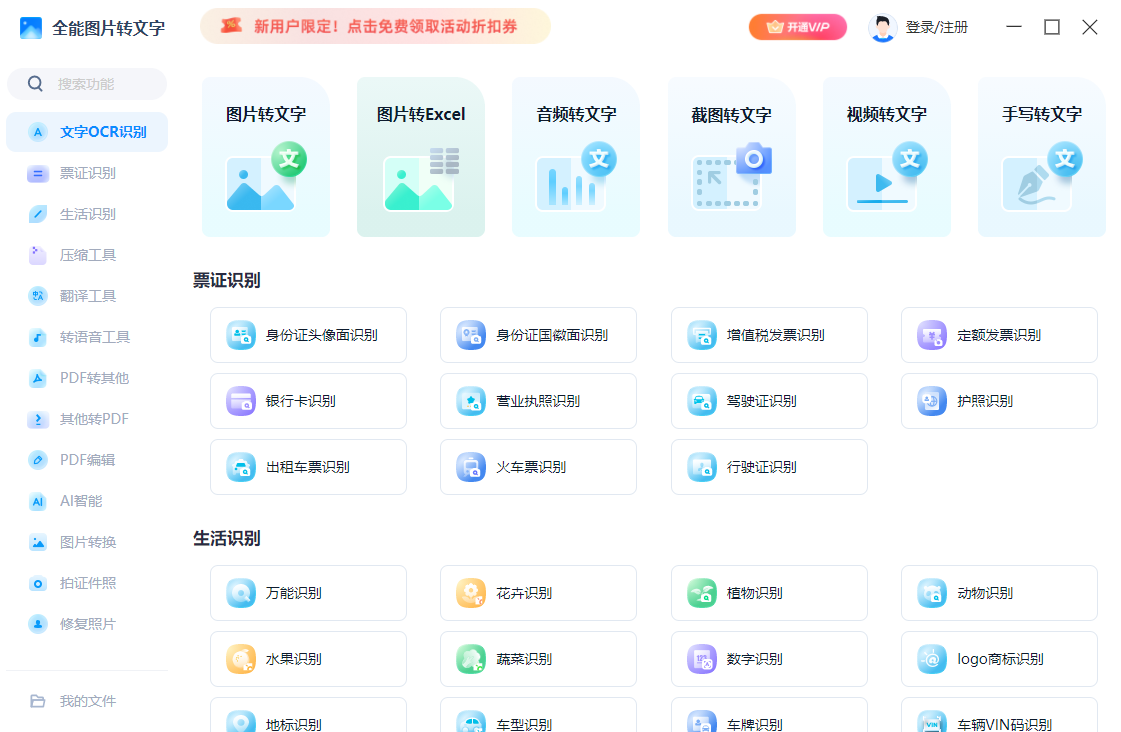 集成专业票证识别,可快速处理身份证、银行卡等证件信息并生成结构化数据。