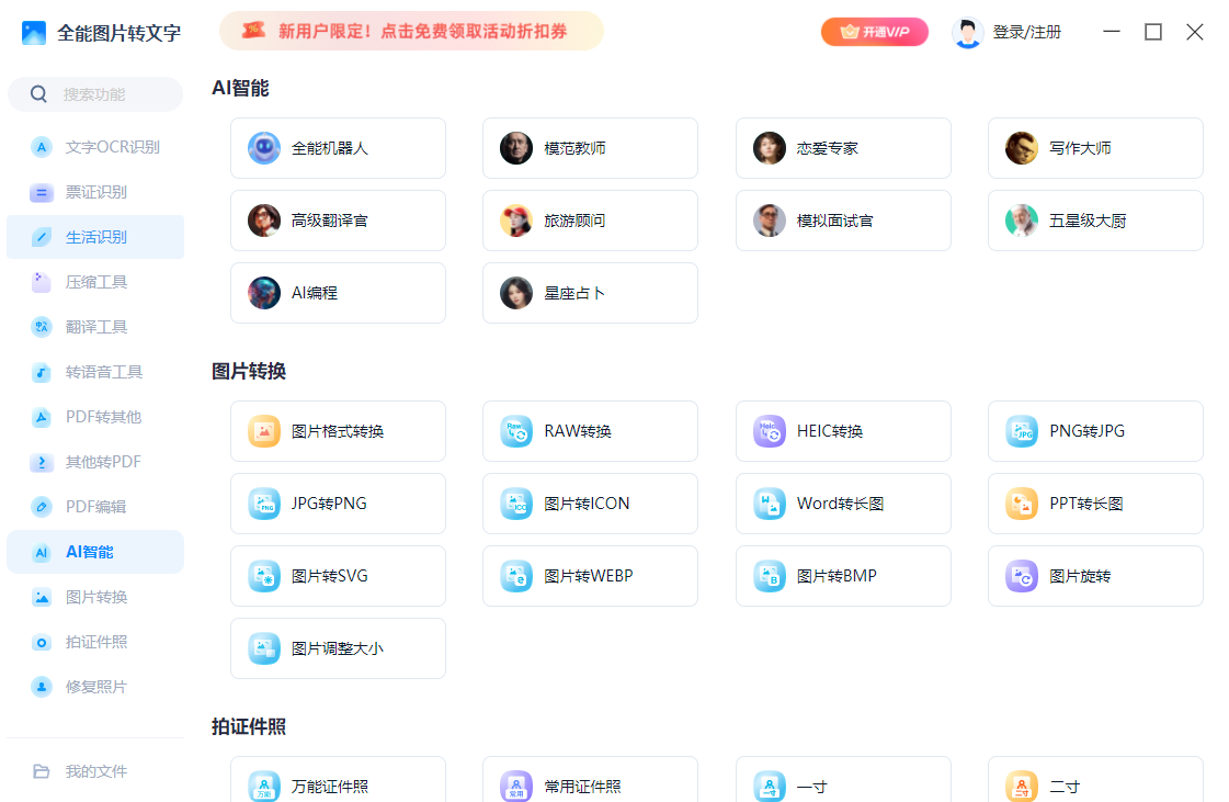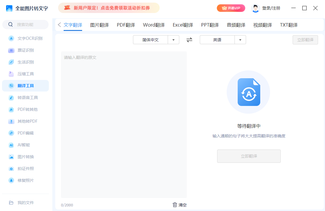全能图片转文字是一款非常好用的orc文字识别工具,全能图片转文字电脑版之中用户只需要直接导入文件就可以快提取其内的文字内容,软件之中还有着非常多的功能,可以利用AI进行各种办公或者娱乐,帮助用户更好的进行工作。